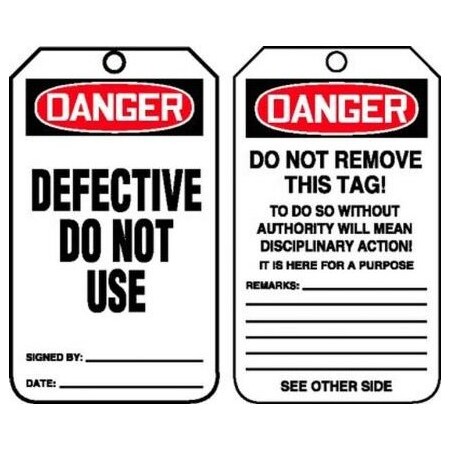 Order MDT175PTP by Accuform RP-Plastic OSHA Tag "Defective Do Not Use" - US Mega Store