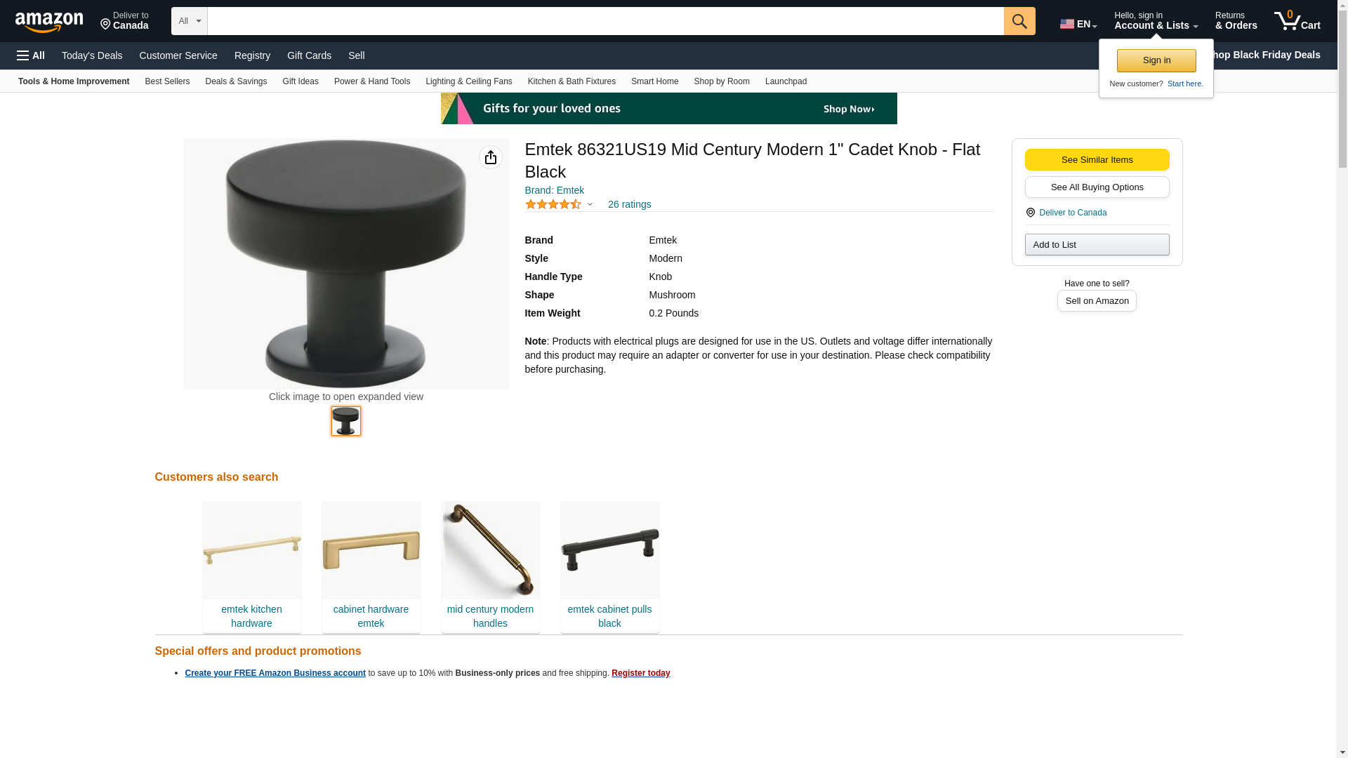 Emtek 86321US19 Mid Century Modern 1" Cadet Knob - Flat Black