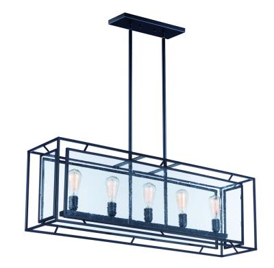 Maxim 21677CDBK Era Geometric Metal Frame Island Chandelier, 5-Light 300 Total Watts, 14" H x 10" W x 43" L, Black