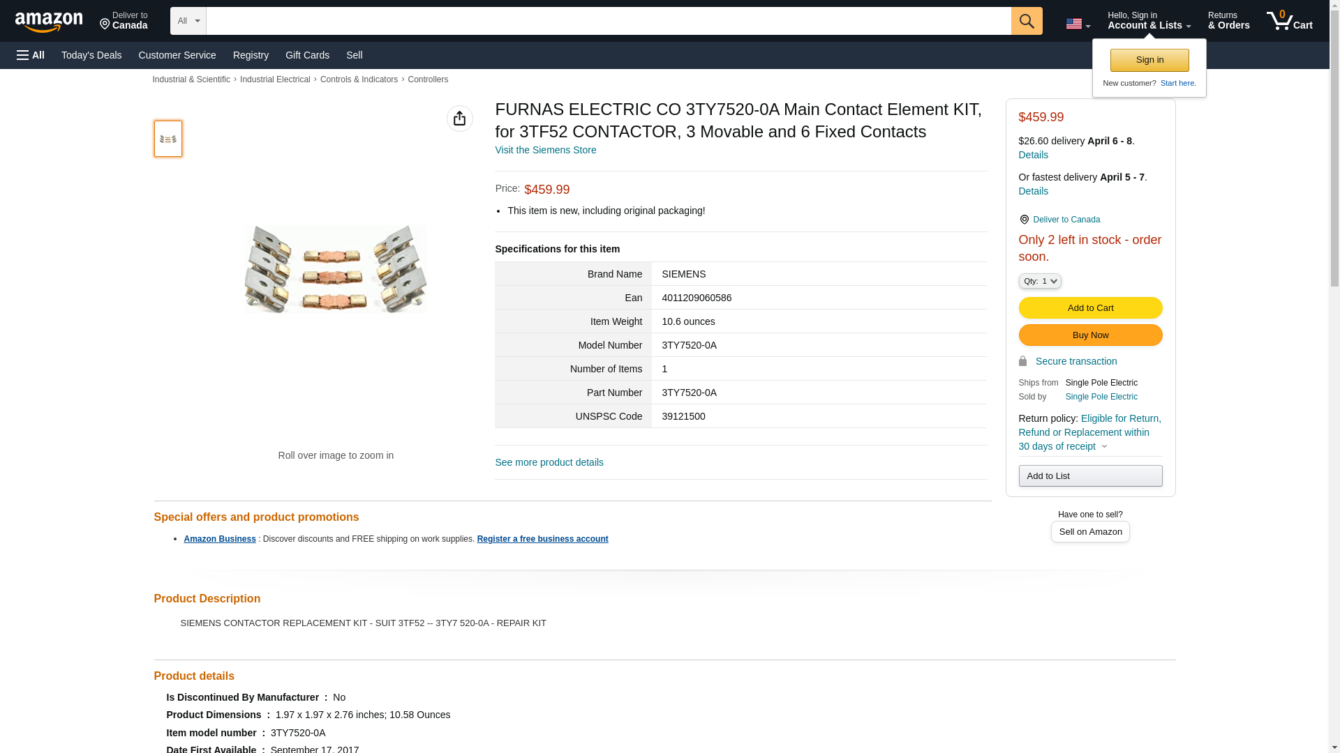 ![]() midwestapplianceparts.com | 3TY7520-0A-FU-P | 1 | Current Unavailable - No ETA Available | 1 | 1 @ $1842.30 |