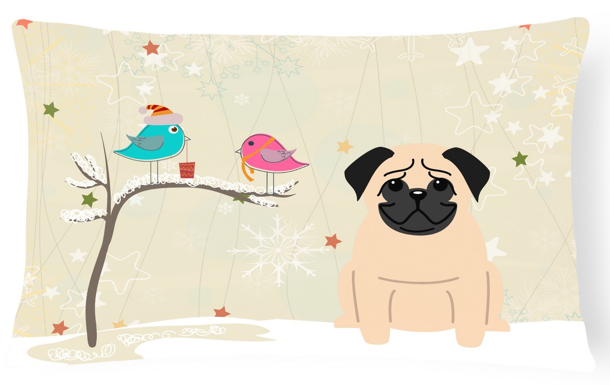Carolines Treasures BB2480PW1216 Christmas Presents Between Friends Pug Fawn Canvas Fabric Decorative Pillow