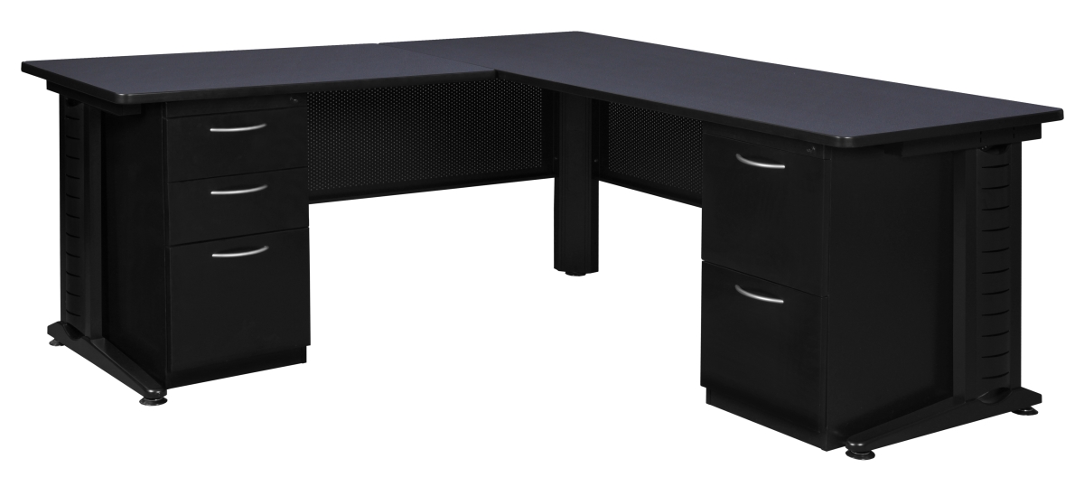 - Good looking 72-inch Double Pedestal L-Desk with 42-inch return with amazing interior wire management capabilities