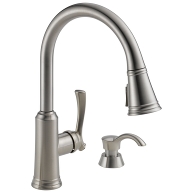 Delta Lakeview 19963Z-SSSD-DST Single Handle Pull-Down Kitchen Faucet with Soap Dispenser and ShieldSpray Technology in Stainless Finish