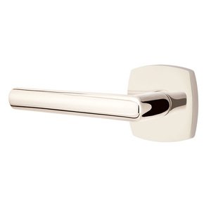 Brass Modern Hardware Collection - Half Dummy Stuttgart Left Handed Lever with Urban Modern Rose in Polished Nickel by Emtek - 5306STU.HALF.US14-LH | MyKnobs