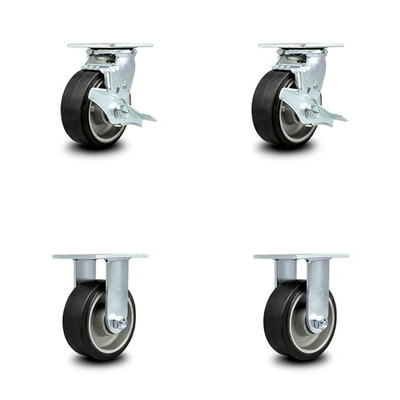 Rubber on Aluminum Swivel Caster w/Main. Free Bearings Set of 4 w/5" x 2" Black Wheels - Includes 2 Swivel with Brakes and Bolt on Swivel Locks & 2 Rigid-2000 lbs Total Capacity - Service Caster Brand
