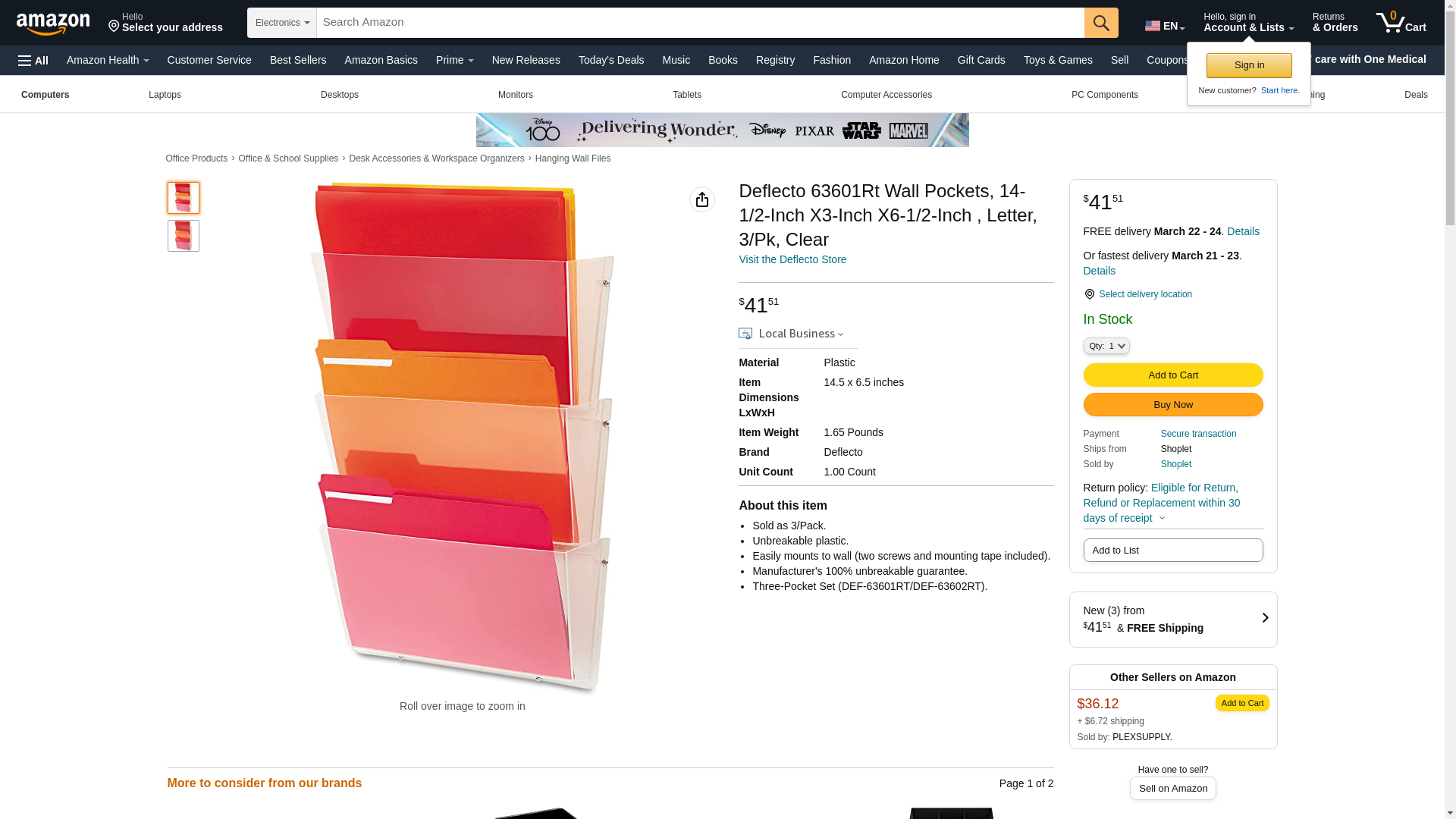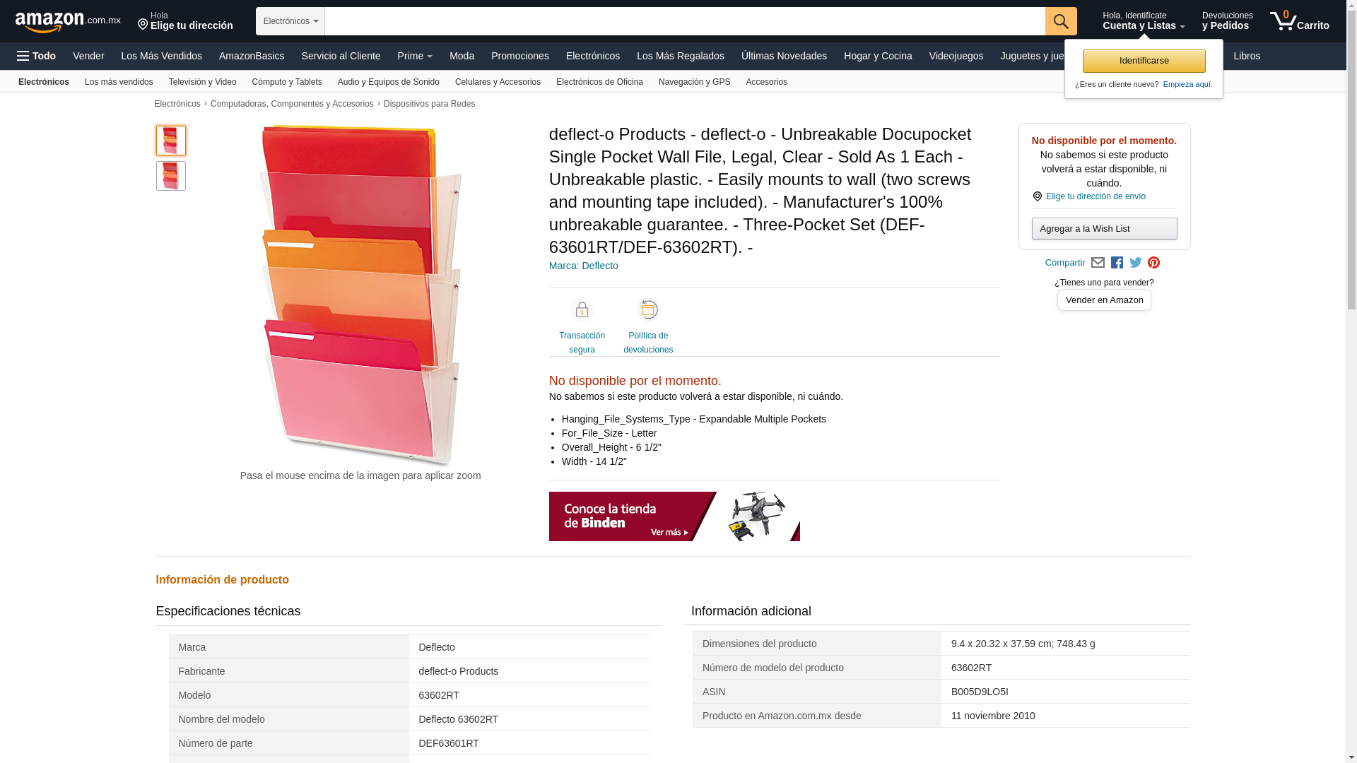 DEF63601RT Features: -Includes 3 pockets. -Holds letter. -Color: Clear. -Made in the USA. Product Type: -Hanging File Folder Racks. Color: -Clear. Country of Manufacture: -United States. Material: -Polypropylene, Vinyl & Pvc/Plastic. Dimensions: Overall Height - Top to Bottom: -14.5". Overall Width - Side to Side: -6.5". Overall Depth - Front to Back: -3". Overall Product Weight: -1.91 lbs.