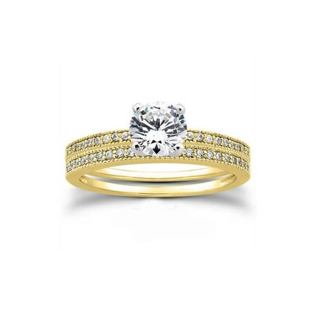 - 14k Yellow Gold Round, Brilliant Diamond diamond engagement ring bridal set 14k yellow gold: This ring features a 1/2ct center and 40 round accent diamonds set in solid yellow gold. 14k