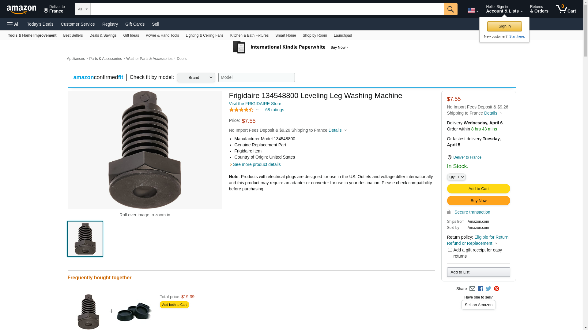![]() midwestapplianceparts.com | 134548800-WCI-P | 1 | -2 | 1 | 1 @ $14.35 |