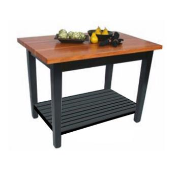 | Feature | John Boos RN-C4824-S Le Classique Table, 1.5 in Edge Grain Cherry, Black Base, 1 Shelf, 48 x 24 in |