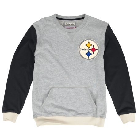 Support your team in style in this "Team to Beat" crew sweatshirt from Mitchell & Ness. Made with incredible detail this heathered gray shirt features embroidered felt throwback team logo at left chest, embroidered Mitchell & Ness logo on bottom right sleeve, 1x1 rib trim at collar, cuffs, waistband and front triangle overlay, kangaroo pocket, contrast cream rib trim at cuff & waistband, felt label at back neck with team name, tailored fit which fits slimmer in the body and sleeves, and is made of 100% cotton 7 oz. lightweight fleece. Officially licensed.