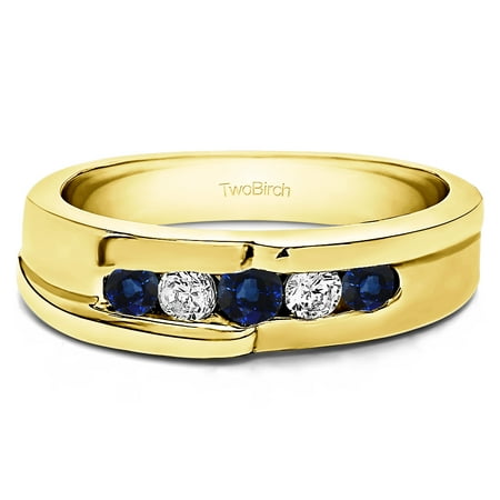 <ul> <li>Sterling Silver: available in Yellow Plated Silver, Two Tone Silver or traditional white sterling silver</li> <li>The ring is set with 0.49 carats of Round stones Diamonds (G,I2) and Sapphire</li> <li>TwoBirch rings are made of heavy and solid metal.</li> <li>This ring is available in 10K Gold, 14k Gold and sterling Silver. Click TwoBirch above to see it in all of its variations.</li> </ul>