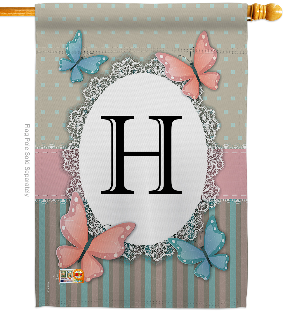 Breeze Decor 30138 Butterflies H Monogram 2-Sided Vertical Impression House Flag - 28 x 40 in.