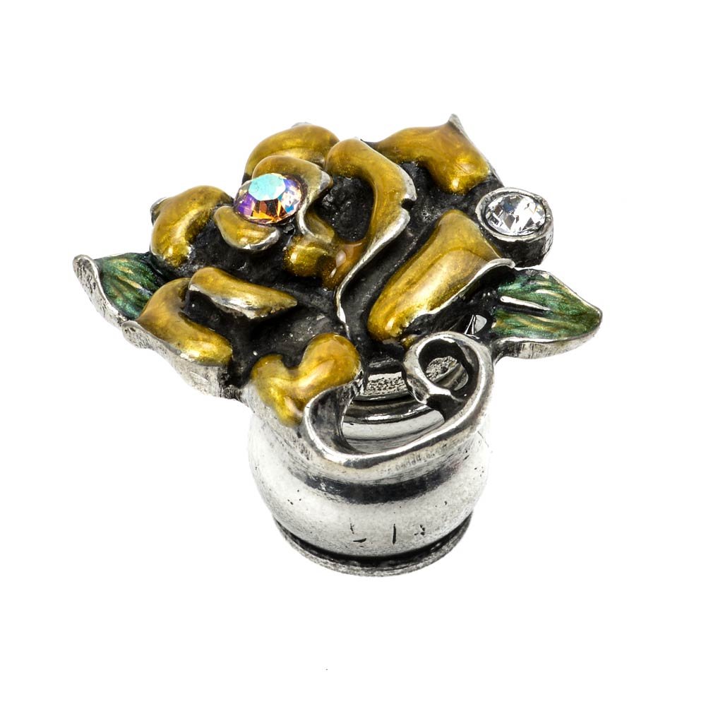 Oak Hollow In the Garden Collection - Rose & Leaf Knob W/ Swarovski Clear Crystals & Golden Bliss Glaze in Oil Rubbed Bronze with Aquamarine by Carpe Diem Hardware - 2912-22-AQ | Knobs 4 Less
