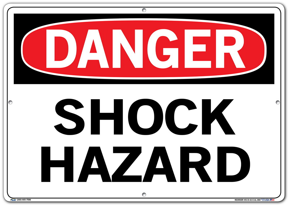 Vestil SI-D-42-E-AL-080 SHOCK HAZARD Danger Sign, Aluminum, 0.080" Overall Size, 20.5" W x 14.5" H
