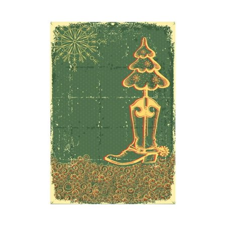 <ul> <li>Title: Vintage Christmas Green Card with Cowboy Boot and Fir-Tree on Old Papaer Texture</li> <li>Artist: GeraKTV</li> <li>Product Type: Art Print</li> </ul>