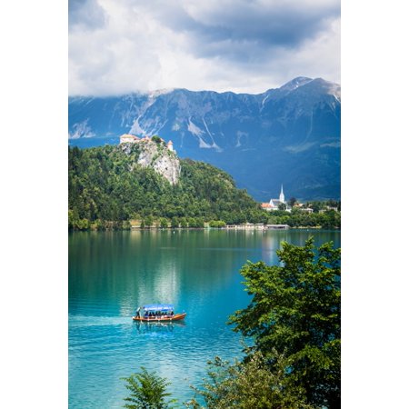 Lake Bled Upper Carniola Slovenia Bled Castle seen across the lake The town of Bled in the background Poster Print by Panoramic Images