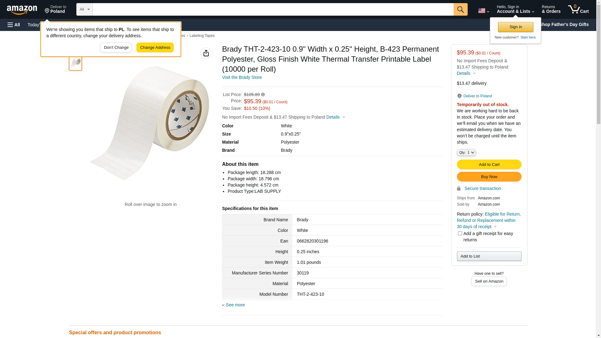 - TypeLabels: Thermal Transfer; Dimension: 22.86 x 6.35 mm; Material8: White Polyester;