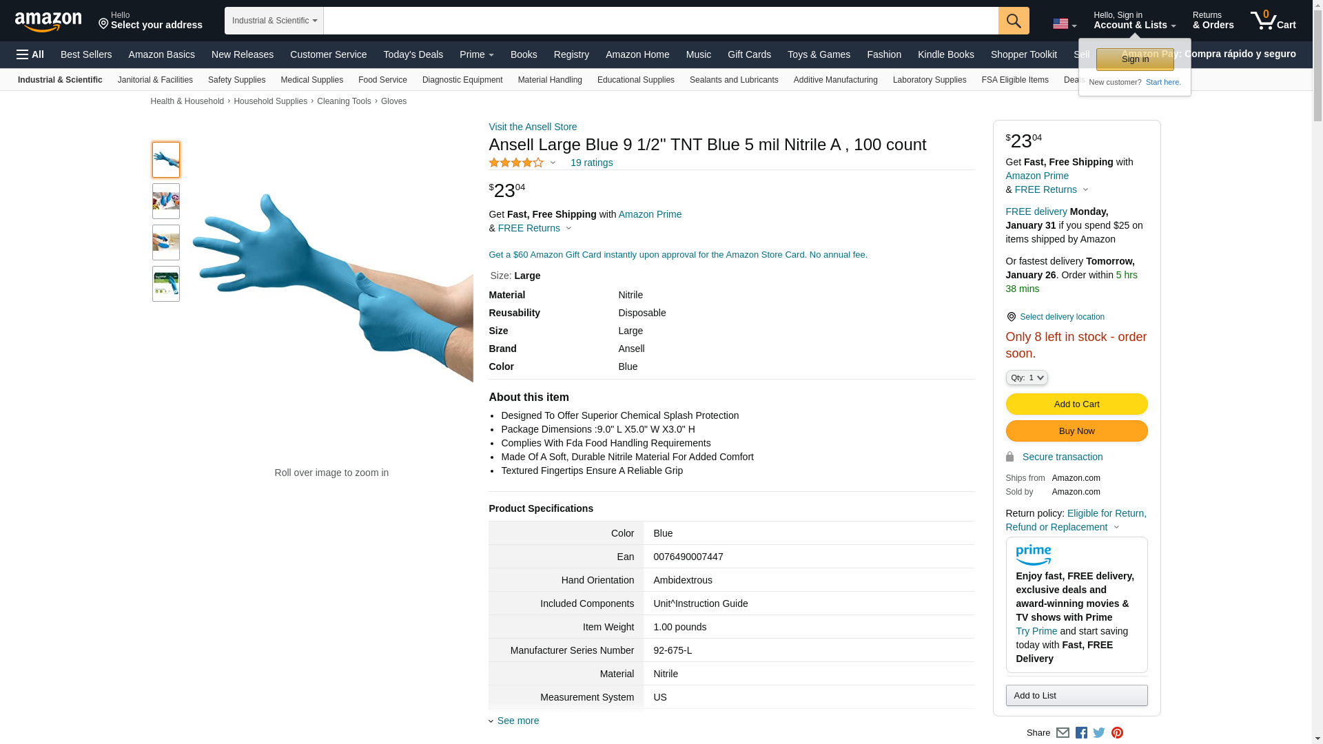 Ansell ANS92675L Ansell Health Powder-free Blue Nitrile Gloves - <br><br>Overview: <br>Large Size - Nitrile - Blue - Powder-free, Durable, Comfortable, Textured, Rolled Cuff, Beaded Cuff, Acid Resistant - For Manufacturing, Laboratory Application, Cleaning, Food Handling, Pharmaceutical, Maintenance, Assembling, Material Handling - 100 / Each<BR>Durable nitrile material is soft and comfortable to prevent irritation<BR>Textured fingers offer exceptional grip for increased control<BR>Rolled beaded cuff ensures secure fit around wrist<BR>Perfect for work in manufacturing, maintenance and more<br><br>Specification: <br>GENERAL INFORMATION<BR>Marketing Information: Single-use gloves do not contain any natural rubber latex to avoid allergic reactions from latex. Durable nitrile material is soft and comfortable to prevent irritation during extended use. Textured fingers offer exceptional grip for increased control when handling smaller items. Rolled beaded cuff ensures a secure fit around the wrist. Powder-free gloves are perfect for work in manufacturing, maintenance, cleanup, laboratory analysis and more.<BR>Manufacturer: Ansell<BR>Manufacturer Part Number: ANS92675L<BR>Brand Name: Ansell<BR>Product Line: TouchNTuff<BR>Product Name: Health Powder-free Blue Nitrile Gloves<BR>Packaged Quantity: 100 / Each<BR>Product Type: Multipurpose Gloves<BR>PRODUCT INFORMATION<BR>Glove Length: 9.50"<BR>Glove Thickness: 5 mil<BR>Size Standard: Large<BR>Application/Usage: Manufacturing, Laboratory Application, Cleaning, Food Handling, Pharmaceutical, Maintenance, Assembling, Material Handling<BR>Features: Powder-free, Durable, Comfortable, Textured, Rolled Cuff, Beaded Cuff, Acid Resistant<BR>PHYSICAL CHARACTERISTICS<BR>Color: Blue<BR>Material: Nitrile