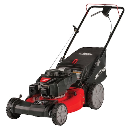 CRAFTSMAN M215 21-Inch 3-in-1 High-Wheeled FWD Self-Propelled Gas Powered Lawn Mower with Bagger - 159cc OHV Engine, Liberty Red