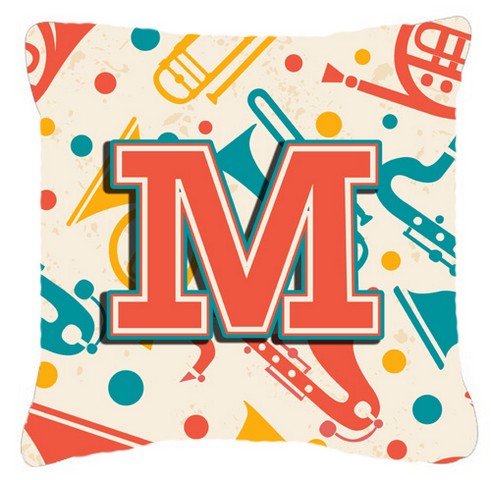 Carolines Treasures CJ2001-MPW1414 Letter M Retro Teal Orange Musical Instruments Initial Canvas Fabric Decorative Pillo