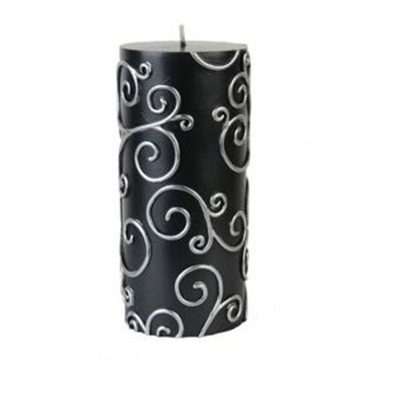 Zest Candle 3 in. x 6 in. Black Scroll Pillar Candle Bulk (12-Case)