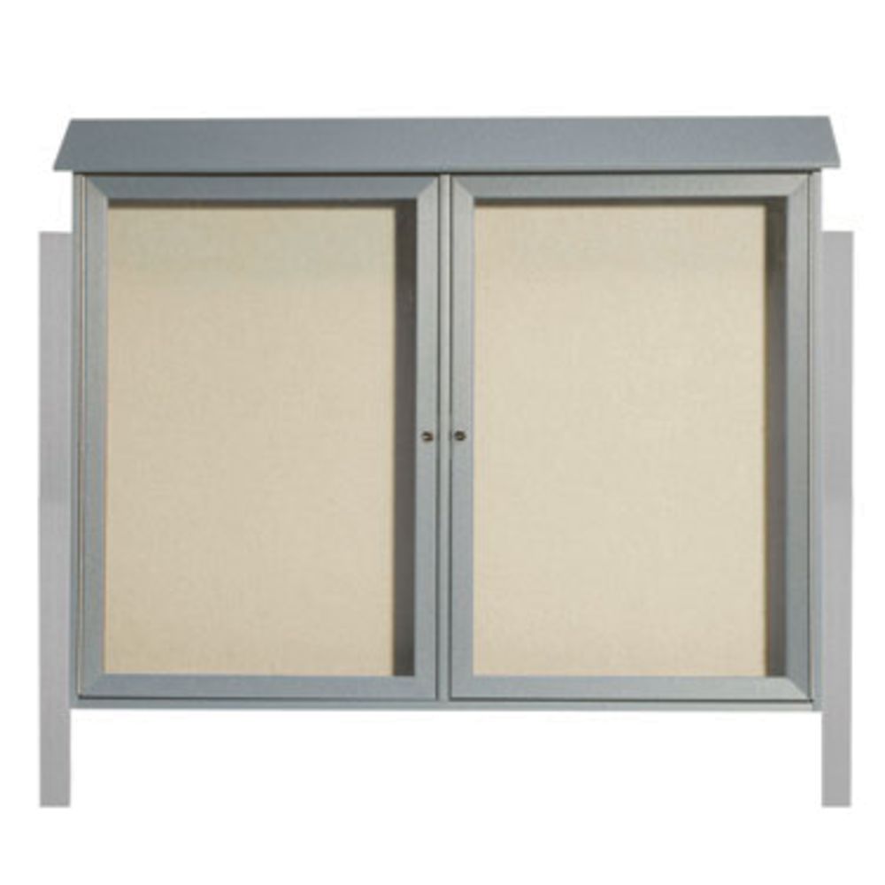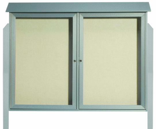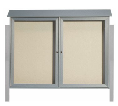 Aarco Products PLD4052-2DPP-2 Light Grey Two Hinged Doors Plastic Lumber Message Center w / Vinyl Posting Surface, Posts 40