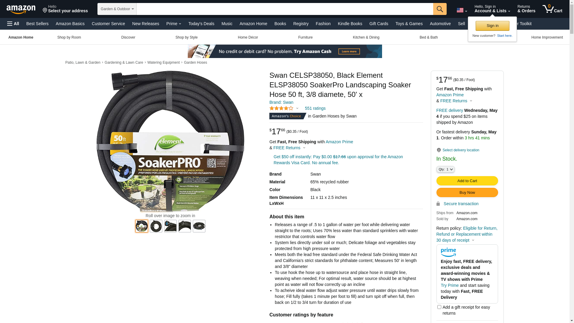 Swan Products Element CELSP38050 SoakerPro Landscaping Soaker Hose 50 ft, 3/8" diameter, Black