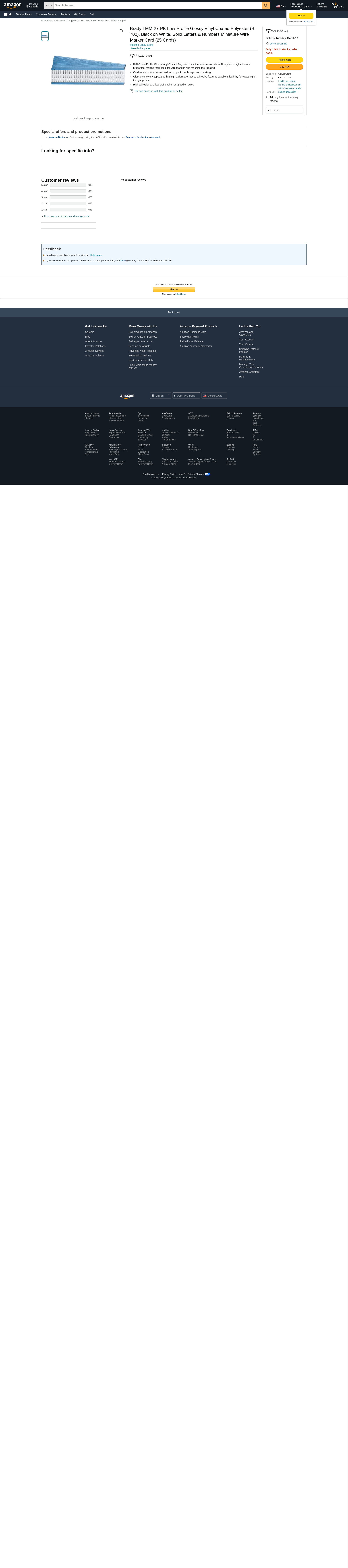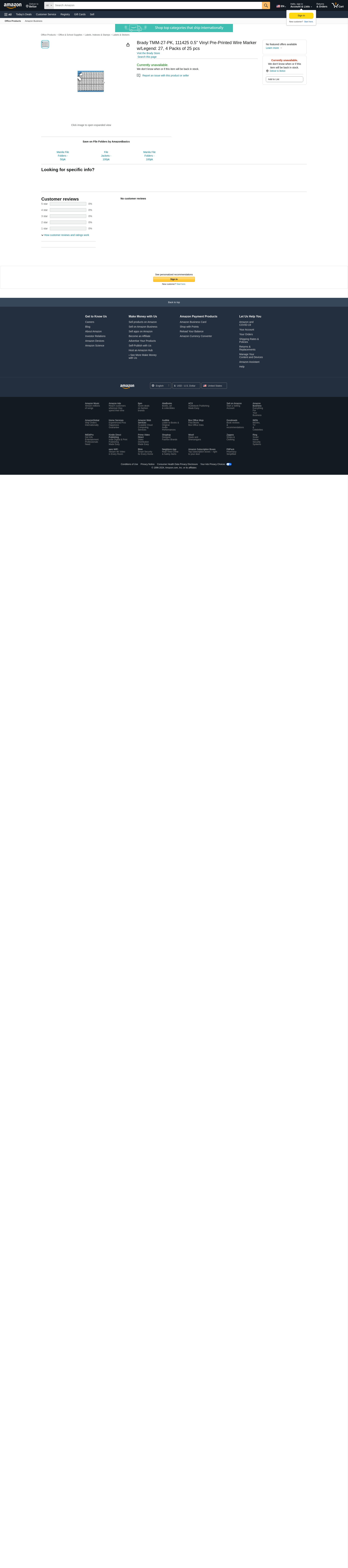 Brady Tmm-27-Pk / Pack Of 25 Cards - Tmm-27-PK