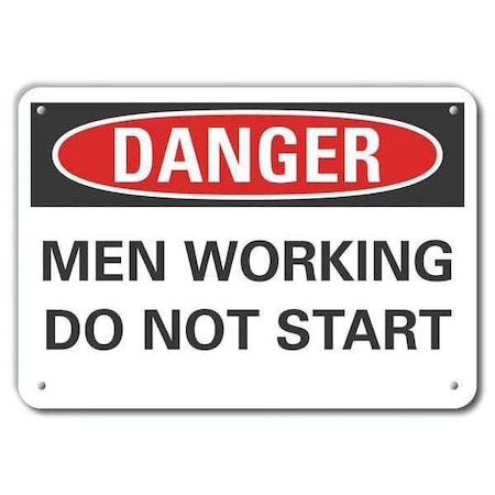 Aluminum Men Working Danger Sign, Vertical Rectangle, Number of Printed Sides 1, English, Sign Format Traditional OSHA, Sign Legend Men Working Do Not Start, Sign Legend Background Color White, Sign Legend Style Text