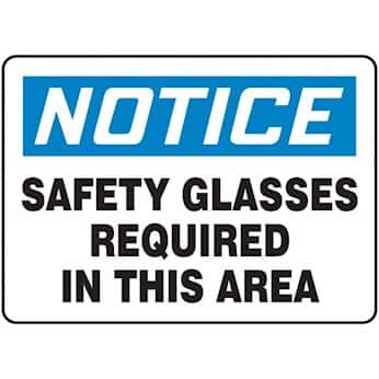 2PK Accuform MPPE854VA Personal Protection Eye & Face Protection NOTICE SAFETY GLASSES REQUIRED IN 7" x 10" Alum (040)