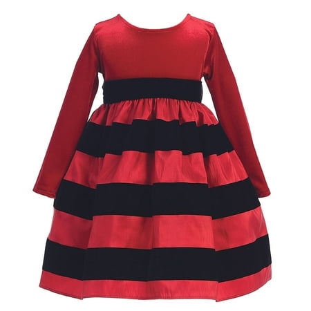 Lito Girls 8 Red Black Flocked Stripe Long Sleeve Christmas Dress