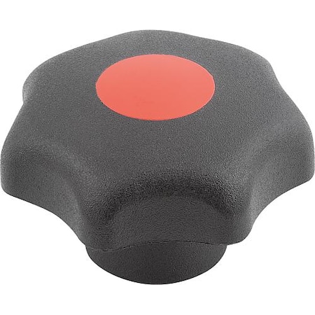 Kipp 06212-2056 Black Thermoplastic/Stainless Steel Tapped Blind Hole Star Grips, M5 Internal Thread, Style K, Metric, 25 mm Diameter, 50 mm Height, Red Cap Color (Pack of 10)