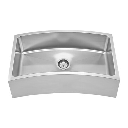 Whitehaus Noahs Collection Chefhaus Series Single Bowl Front Apron Undermount Sink With A Curved Design Brushed Stainless Steel WHNAPCV3218
