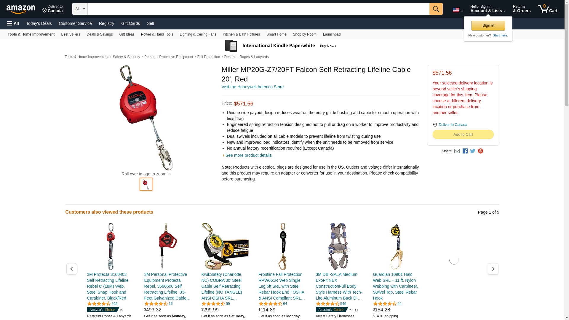 Falcon Self-Retracting Lifelines, 1EA - Miller By Sperian MP20G/20FT