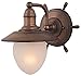 Using traditional nautical styling with its ships wheel design, the Orleans takes a classic style and makes it better. The Orleans features an antique red copper finish with frosted glass. This versatile collection can be used indoors as well as outdoors. Mount these lights on your porch, entryway, or inside your home and experience this coastal look for yourself. FEATURES: One light bathroom light from the Orleans collection Height: 10.50 inches Width: 9.00 inches Style: Nautical light Type: bathroom light Finish: Antique red Copper Safety rating: UL, CUL, and safety listing: wet