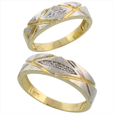 World Jewels 10K Yellow Gold .06 Ct. Brilliant Cut Diamond Wedding Ring Set, Size 8