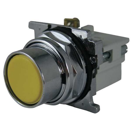 Eaton Electrical - 10250T30Y - 10250T-30.5mm-Heavy-Duty-NEMA 3-3R-4-4X-12-13-Non-illuminated-Momentary-Yellow actuator-Flush-1NO-1NC-Chrome Bezel-Plastic Actuator