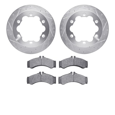 Dynamic Friction Company Rear Brake Rotors Drilled and Slotted Silver with Heavy Duty Brake Pads - 7202-40052