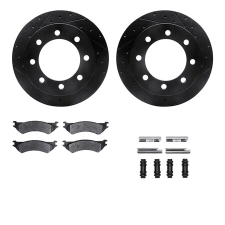 8512-99447, Rotors-Drilled and Slotted-Black w/ 5000 Advanced Brake Pads incl. Hardware, Zinc Coated
