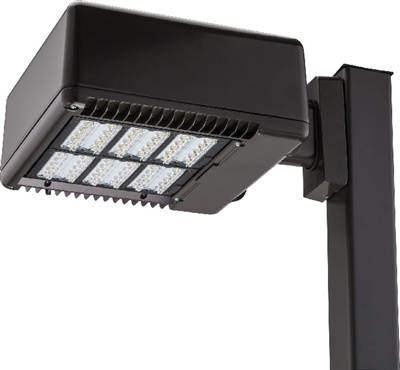 Lithonia KAD LED 30C 530 30K R4 120 SPUMBAK04 DBLXD 53W LED Contour Soft Square Area Light, 30 LEDs, 530mA, 3000K, Type IV Distribution, 120V, 4" Arm Square Area Light Pole Adaptor, Black