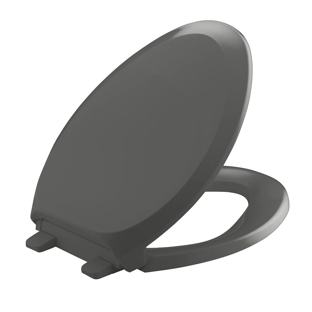KOHLER K-4713-58 French Curve Quiet-Close with Grip-Tight Bumpers Elongated Toilet Seat, Thunder Grey