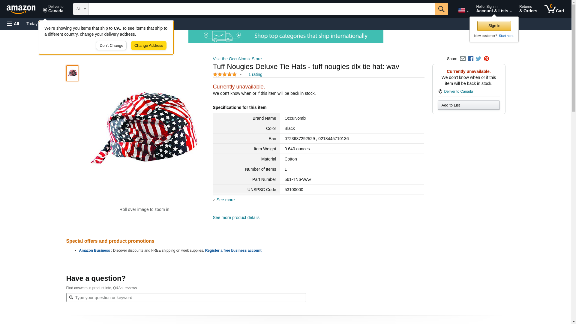 Occunomix TN6-WAV Tuff Nougies Deluxe Tie Hat Wavy Flag