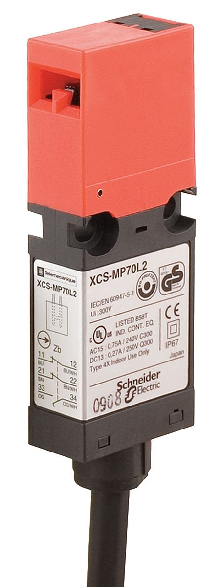 The Telemecanique XCSMP59L2 is a safety interlock switch with 1 NC + 1 NO contacts, a 2m cable, and a plastic enclosure. The switch meets the Ingress Protection IP67 standard for protection against dust and water. Founded over 90 years ago, Telemecanique Sensors is an independent brand of Schneider Electric, specializing in sensors and sensor-related technology. Telemecanique Sensors is a global player, present in more than 20 countries, with products distributed worldwide through a broad network of partners. Focused on 3 core values ? Simplicity, Proximity and Expertise ? we are experts in factory automation sensors as well as specialists in demanding applications, making our customers? lives "simply easy! "