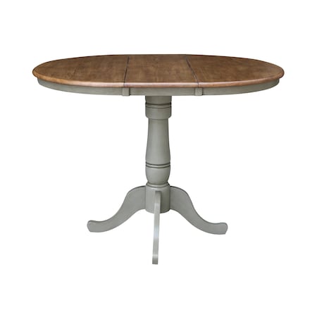 IC International Concepts 36" Round Top Pedestal 12" Leaf-Bar Height-Distressed Hickory/Stone Finish Dining Tables