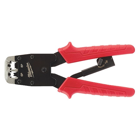 The ratcheting modular crimper is designed for installing RJ11 and RJ45 modular jacks and delivers CONSISTENT & ACCURATE CRIMPS. This unique design allows you to apply equal force when performing crimps. An in-line design head that gives you improved visibility and easy access for jack removal. The ergonomic grips allow users to comformtably crimp. Parallel Crimp Design Imrpoved Visibility Easy jack removal Crimps RJ45 and RJ11 Durable Construction Comfortable Ergonomic Grips Modular Jack Crimper
