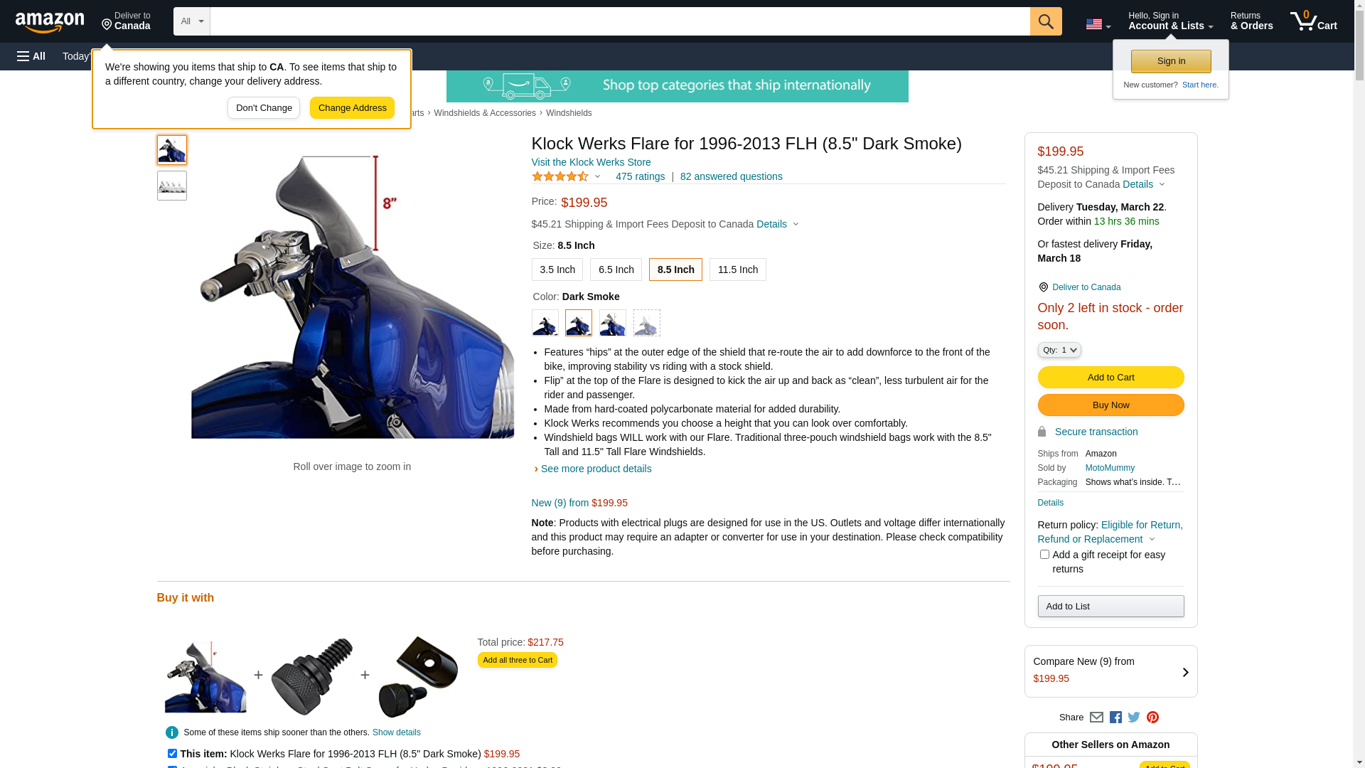 Klock Werks 8.5in Flare Windshield - Dark Smoke KW05-01-0210