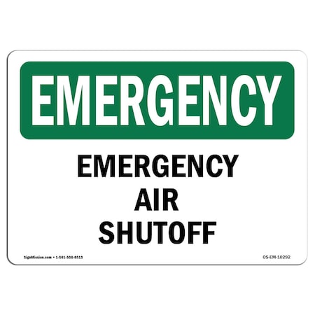 OSHA EMERGENCY Sign, Air Shutoff, 18in X 12in Rigid Plastic
