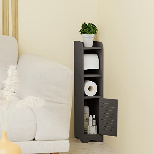 GAKOV Toilet Paper Storage Stand, Small Bathroom Storage Cabine, 4-Tier Bathroom Organizer for Small Space and Corner - Smoke Home & Garden