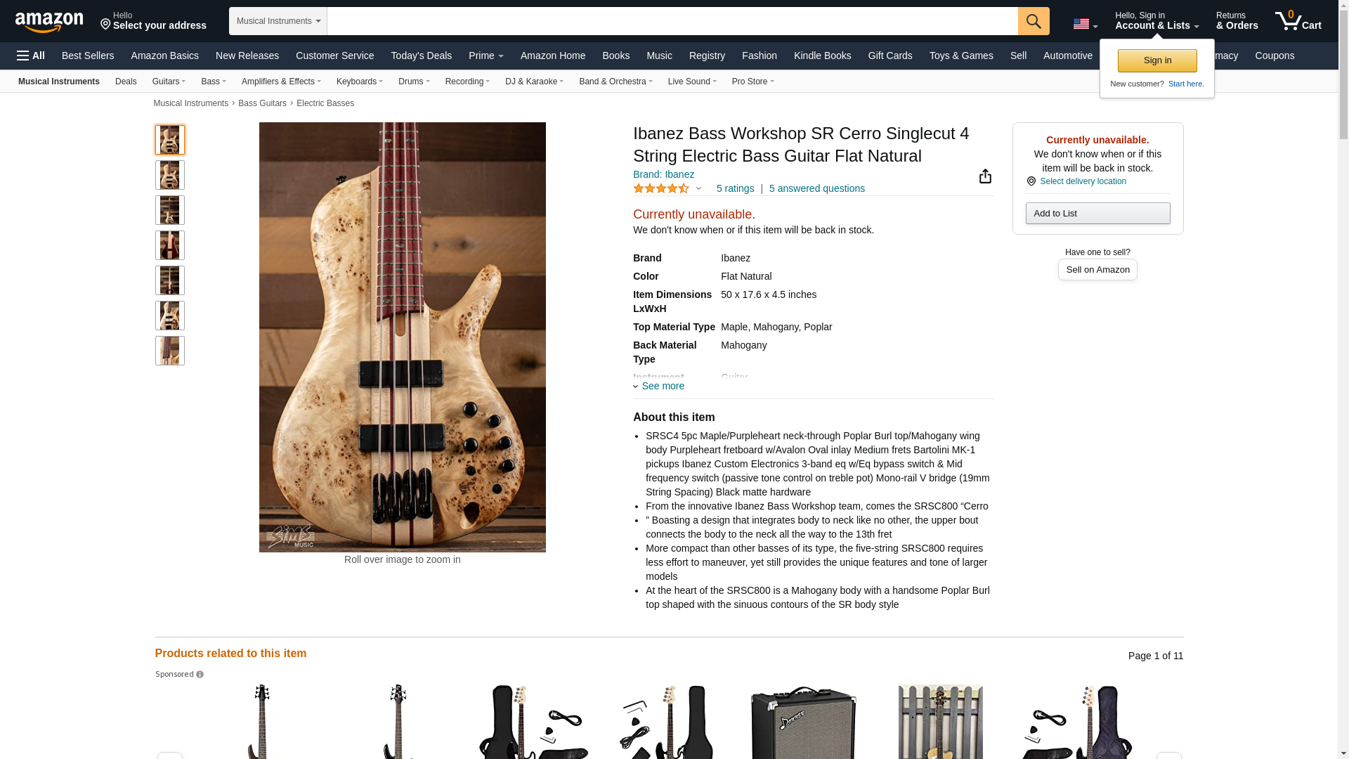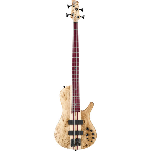 | Feature | SRSC4 5pc Maple/Purpleheart neck-through Poplar Burl top/Mahogany wing body Purpleheart fretboard w/Avalon Oval inlay Medium frets Bartolini MK-1 pickups Ibanez Custom Electronics 3-band eq w/Eq bypass switch & Mid frequency switch (passive tone control on treble pot) Mono-rail V bridge (19mm String Spacing) Black matte hardware |