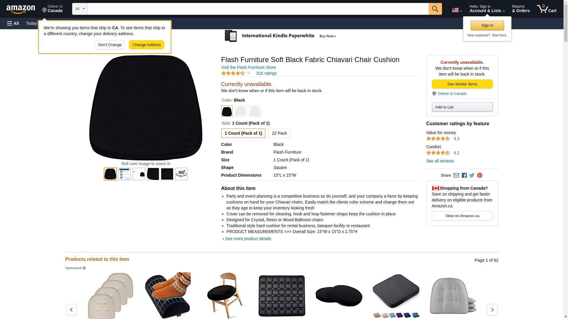 Flash Furniture Soft Black Fabric Chiavari Chair Cushion